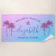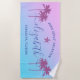 Le design personnalisé des serviettes de plage pour une escapade sur la plage de filles a un prénom personnalisé dans l'écriture de script moderne accentué d'une étoile de mer et encadré par des palmiers tropicaux. Personnalisez avec un nom et un texte personnalisé pour l'occasion spéciale. L'Arrière - plan est agrémenté d'un joli dégradé de coucher de soleil dans les tons violet, violet et bleu.
