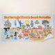 Une scène lumineuse et colorée offre une vue spectaculaire de la Californie du Sud - personnages farfelus sur la plage et le désert de SoCal présentant les parcs de Los Angeles, Orange County, San Diego, Père Noël Barbara, Riverside, Palm Springs, El Centro, Salton Sea, Anza Borrego et Joshua Tree ainsi que les villes frontalières de Tijuana, Tecate et Mexicali. Cette charmante scène a tout - un surfeur pend dix tandis qu'un orque saute de l'eau, des animaux de zoo accueillent les touristes, les amateurs de vin font un toast comme un randonneur est remarqué par un OVNI et bien plus encore...