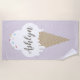 Trouvez facilement votre serviette avec cette serviette de plage super mignonne avec grand nom de calligraphie sur un cône glacé à la vanille dégoulinante avec des arrosages arc-en-ciel. Parfait pour une journée à la plage ou au bord de la piscine. Prenez-le avec vous et ne vous inquiétez pas si quelqu'un d'autre réclame votre serviette.