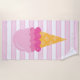 Serviette De Plage crème glacée rose rayures blanches monogramme