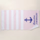 Serviette de plage personnalisée rayée rose avec ancre marine bleu marine