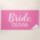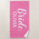 Serviette de plage de la mariée rose et blanche nouvellement mariée. Serviette de plage avec écriture moderne pour la femme du marié. Serviette de lune de miel parfaite pour la mariée. Personnalisez ce design personnalisé avec votre propre nom ou texte.
