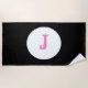 La serviette de plage de monogramme est une conception chique avec l'arrière - plan noir solide et le grand cercle blanc au milieu de serviette de plage. Le monogramme est au centre du cercle blanc. Vous pouvez changer la couleur de la lettre de serviette et de monogramme si vous voudriez.