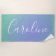 Retro Vert et Bleu | Nom de script personnalisé Beach Towel