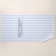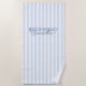 Serviette de plage personnalisée pour demoiselle d'honneur à rayures bleues poussiéreuses avec un motif à rayures verticales bleues et blanches douces, un texte bleu poussiéreux et une police de caractères cursive noire pour le nom. La palette de couleurs épurées et le mélange de typographie moderne et cursive créent une atmosphère calme et élégante, parfaite pour les cadeaux de groupe de mariée, les escapades d'enterrement de vie de jeune fille ou les idées de proposition de demoiselle d'honneur personnalisées avec une sensation fraîche et intemporelle. Rendez-la vôtre avec une personnalisation facile. Besoin d'une commande personnalisée ? Envoyez-nous simplement un message, nous sommes là pour vous aider. Veuillez noter que les temps de réponse peuvent varier légèrement en raison du décalage horaire.