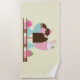 Une serviette de plage sur le thème de la crème glacée sucrée. Illustré avec un bar à crème glacée au chocolat, un sundae à 3 boulettes avec une cerise sur le dessus, et un flotteur à fraise avec de la crème fouettée. Petites fraises et cerises. Arrière - plan jaune pâle. Rafraîchissant, gourmandises chaudes en été.