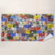 Voici un design décalé, décalé, décalé, zany—et même un peu bizarre—à emmener à la plage ou à la piscine. Il présente un motif en briques de dessins de caricatures rapprochés, de visages et de globes oculaires.