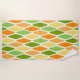 Cette serviette de plage au design moderne du milieu du siècle de diamants aplatis dans les tons jaune, orange et vert.