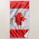 Serviette de plage avec un look satiné drapeau canadien Feuille d'érable, en rouge et blanc