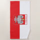 Cette belle serviette de plage a le drapeau de la Pologne là-dessus. Le drapeau de la Pologne se compose de deux rayures horizontales de largeur égale, les supérieures blanches et de l'un rouge inférieur. Les deux couleurs sont définies dans la constitution polonaise comme couleurs nationales. Une variante du drapeau avec le manteau des bras national au milieu de la rayure blanche est légalement réservée pour l'usage officiel à l'étranger et en mer.