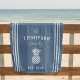 Customisez votre maison de bord de mer, votre maison de plage ou votre zone de piscine avec cette mignonne serviette de plage personnalisée portant votre nom de famille ou votre nom de maison et l'année établie en lettres blanches accentuées par une illustration d'ananas sur un arrière - plan bleu poussiéreux. Les détails de la corde nautique complètent la conception.