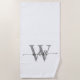 Serviette De Plage Élégant Moderne Blanc Gris Monogramme Nom Script
