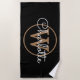 Serviette de plage monogramme noir et or classique. Vous pouvez personnaliser le nom, le monogramme et customiser la police et les couleurs pour créer votre propre design unique. Conçu par Thisnotme©
