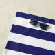 Cette belle serviette de plage rayée bleu marine et blanc peut être customisée avec votre nom, le nom du destinataire s'il s'agit d'un cadeau, un nom de bateau...les possibilités sont infinies. Idée cadeau parfaite pour les amateurs de bateau ou d'eau dans votre vie!