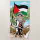 Petit garçon mignon de Gaza, portant un Keffiyeh, et tenant le drapeau palestinien, symbole de liberté et d'indépendance de la Palestine libre. Illustration graphique Vector originale copyright BluedarkArt TheChameleonArt.