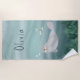 Cette mignonne serviette de plage pour enfants présente une illustration de phoque de l'océan avec du poisson, des algues et un arrière - plan bleu turquoise à vagues. Il y a aussi de l'espace sur la serviette pour ajouter votre propre personnalisation : un nom dans la typographie capricieuse. Le cadeau parfait sous la mer pour tout enfant ou passionné d'océan!