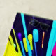 Une oeuvre d'art abstraite vibrante avec des éclaboussures de peinture néon éclatant du centre, créant une explosion de couleur énergique sur une toile sombre (Ce design Fabriqué avec de l'IA). Commandez dès aujourd'hui et offrez-vous la joie du shopping !