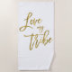Célébrez l'amitié et le plaisir avec notre serviette de plage "Amour Ma Tribu" en faux or, avec un design d'anneau chic. Parfait pour les enterrements de vie de jeune fille, les journées à la plage et les ambiances de célibataire, car votre tribu mérite de briller !