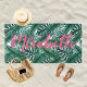 Serviette De Plage Feuilles de palmier à l'aquarelle tropicale Nom ro