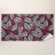 Serviette De Plage Feuilles gris sur rouge foncé