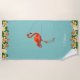 Serviette De Plage Flamant rose & Plumeria Fleurs sur Turquoise Turqu