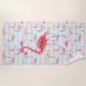 Serviette De Plage Flamant rose rose et rayures bleues