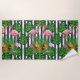 Flamant rose rose Fleurs tropicales Grunge foncé Serviette de plage