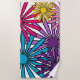 Cette serviette de plage est parsemée de fleurs des années 1970 dans le violet, le rose, le jaune et le turquoise.