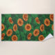 Serviette De Plage Fleurs Zinnia orange, feuilles verts sur vert fonc