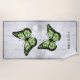 Profitez de votre journée à la plage ou au bord de la piscine avec une serviette de plage personnalisée à base de papillon vert. Le design des serviettes comprend une paire de papillons vibrants reposant sur une vigne blanche à fleurs contre un arrière - plan gris clair. Autres cadeaux disponibles avec ce design ainsi qu'une variété de couleurs.
