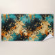 Serviette De Plage Gold Black Aqua Orange Leopard Abstrait