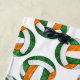 Cette équipe colore la serviette de plage personnalisée pour les filles de volley dispose d'un motif de petites boules de volley stylisées vert, orange et blanc disposées en motif miroir sur un arrière - plan blanc personnalisable - personnalisez avec son nom et son numéro de maillot - par katz_d_zynes