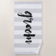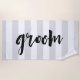 Profitez des rayons de soleil sur votre lune de miel avec notre serviette de plage "GROOM" qui montre votre statut de mariée ! Le design présente des rayures gris clair et blanches avec "groom" en noir écrit à la main. Style "mariée" disponible dans notre boutique!