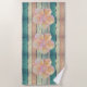 Bois patiné qui rappelle une promenade en bord de plage aux couleurs de sable, turquoise et corail. Parfait pour un gîte en bord de mer ou une maison de plage. Embelli avec une fleur d'hibiscus rose corail.