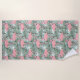 Profitez d'un confort total à la plage ou au bord de la piscine, et cool et séchez avec cette serviette de plage amusante, colorée et confortable. Etendez-vous dans le sable avec ces beaux flamants roses pastel contemporains sur des feuilles de palmiers vertes sur des touches motifs d'aquarelle bleu clair et turquoise aqua. Design orné, funky, moderne et fantaisiste de serviettes de plage pour la mode artistique fashionista ou artsy, branché, retro vintage aquarelle peinture style art ou amoureux de motifs abstraits.