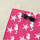 Serviette De Plage Hippocampe et poisson-étoiles, blanc sur rose fuch