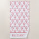 Cette serviette de plage amusante présente des homards rouges côtiers classiques sur un arrière - plan blanc. Personnalisez la bande blanche en bas avec votre choix de nom ou de texte spécial.