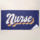 NURSE BOLD RETRO BLUE BEACH TOWEL Gras et fabuleux bleu de la serviette de plage avec le mot infirmière empilé dans le script super lettrage. Un clair "brillant" contours le script lui donnant une sensation de signe néon. Les couleurs affichées sont le bleu, le blanc, l'orange et le jaune. Un cadeau formidable et utile pour une infirmière, une infirmière ou une étudiante en soins infirmiers. Les serviettes de plage sont polyvalentes et peuvent également servir de serviettes de bain. De Appelé. SUPER !