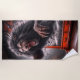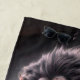 Cette serviette de plage a un lion effrayant dessus.