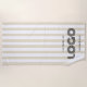 Ajoutez votre propre image de logo commercial de forme rectangulaire moderne en noir ou coloré pour créer des serviettes de plage rayées de style perle beige et blanc classique. Vous pouvez déplacer les modèles de texte si vous avez un carré ou un autre logo de forme. Customisez le style, la taille et la couleur de la police pour répondre à vos besoins professionnels. Changez la couleur jaune doré de l'arrière - plan selon les besoins pour correspondre aux couleurs de votre petit hôtel.