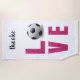 Love Soccer avec des lettres étincelantes rose chaud et le "o" est remplacé par un ballon de football.