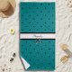 Réservez votre place au soleil avec une serviette qui définit le luxe au bord de la piscine. Enveloppez-vous de l'énergie vibrante de l'été avec cette serviette de luxe moderne sarcelle et noire à pois. Cette serviette surdimensionnée et moelleuse présente une bande centrale frappante pour votre nom personnalisé, garantissant que votre installation de plage est aussi unique que votre itinéraire. Que vous vous prélassiez au bord de la Méditerranée ou au club local, cette serviette apporte une touche d'élégance de boutique à votre après-midi. L'ambiance estivale ultime - personnalisée, chic et prête pour l'eau.