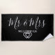 Mr. And Mrs Black and White Monogram Personnalisé Beach Towel est l'idée cadeau parfait pour les jeunes mariés. La grande serviette noire personnalisable est moderne et design avec "mr and mrs" dans un écriture manuscrite blanche et moderne. Le nom de famille est en lettres d'impression minimes blanches et deux petits coeurs coincés au fond de la serviette.