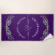 Arrière - plan violet, texte blanc. Monsieur, et un coeur. Décoré de fleurs de lavande et de verdure d'eucalyptus. Personnalisez et ajoutez vos noms.