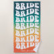 Organisez une soirée de bachelorette ou une fête de mariage rétro au bord de la piscine ou sur la plage ? Voici une conception de typographie de mariée rétro groovy et stylée sur un fond dégradé arc-en-ciel rétro. Rendez-la encore plus spéciale en ajoutant votre nom, lorsque vous sélectionnez "personnaliser ce modèle". Pour toute question ou demande concernant ce design, veuillez nous contacter via le chat ; nous serons ravis de vous aider !