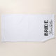 Cette serviette de plage noire et blanche fait un beau cadeau pour la future mariée. Pour modifier le texte, cliquez sur le bouton Personnaliser.