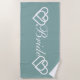 Bride Mariage Turquoise White Hearts Beach Towel est une excellente façon pour chaque mariée ou épouse d'être pour célébrer son mariage! La grande serviette de plage est munie d'un arrière - plan turquoise aux coeurs blancs accrochés à l'avant et à l'extrémité de "Bride", qui est conçu en lettrage calligraphie blanc. Fait une grande idée de cadeau de douche mariage ou nuptiale. Parfait pour les vacances en lune de miel aussi !