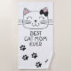 Cette serviette de plage blanche est ornée d'un chaton caricaturale adorable avec un joli ruban sur la tête et quelques pattes de chat. La légende en casquette dit "Meilleure maman chatte jamais".