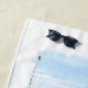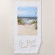 Serviette de plage avec photo du bord de mer avec dunes de sable et herbes de plage, y compris une citation humoristique de On Beach Towel Time.