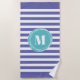 Jolie et tendance serviette de plage rayée cabane à l'ombre de violet bleu) et motif rayé blanc avec votre monogramme à l'intérieur d'un cercle abstrait bleu aqua. Facile à customiser en cliquant sur le bouton personnaliser.